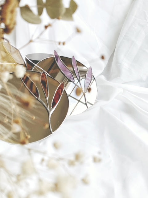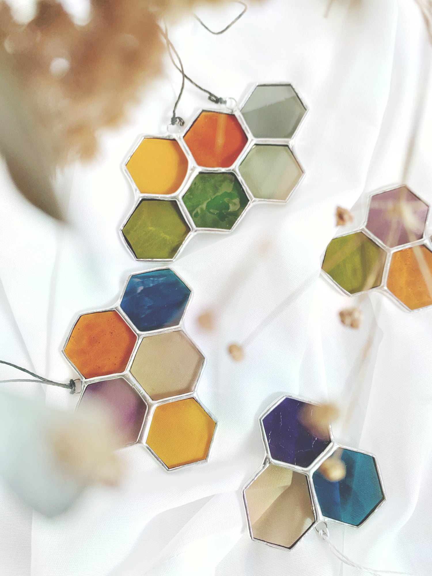 Also known as the Tiffany method, this technique consists of wrapping each piece of glass in copper foil tape (we refer to it as foiling). Then the foiled pieces are soldered together with an alloy. Traditionaly, the alloy is made of lead. However, I have made the conscious choice to exclusively work with lead free solder.