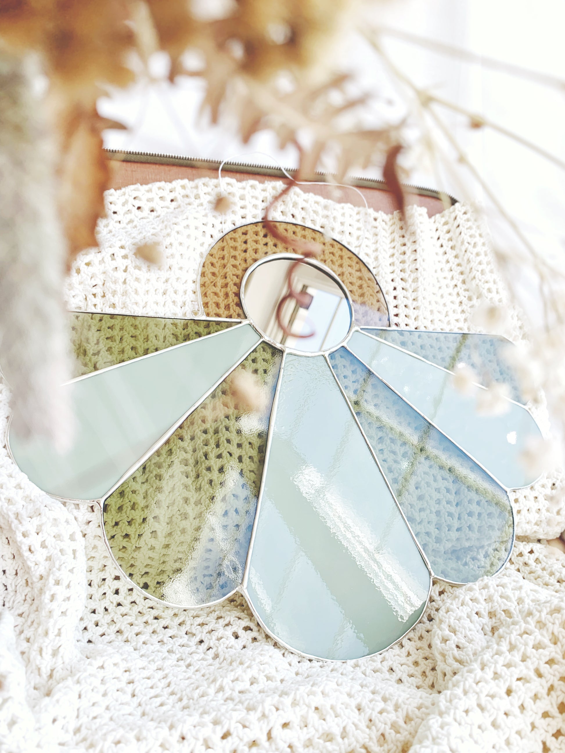 A noter que chaque coupe de verre est différente dans chacune de mes créations, elle peut contenir de petites imperfections comme des bulles, des lignes de pliage, etc. Celles-ci sont le résultat de la fabrication, et sont ce qui rend chaque pièce de verre unique.