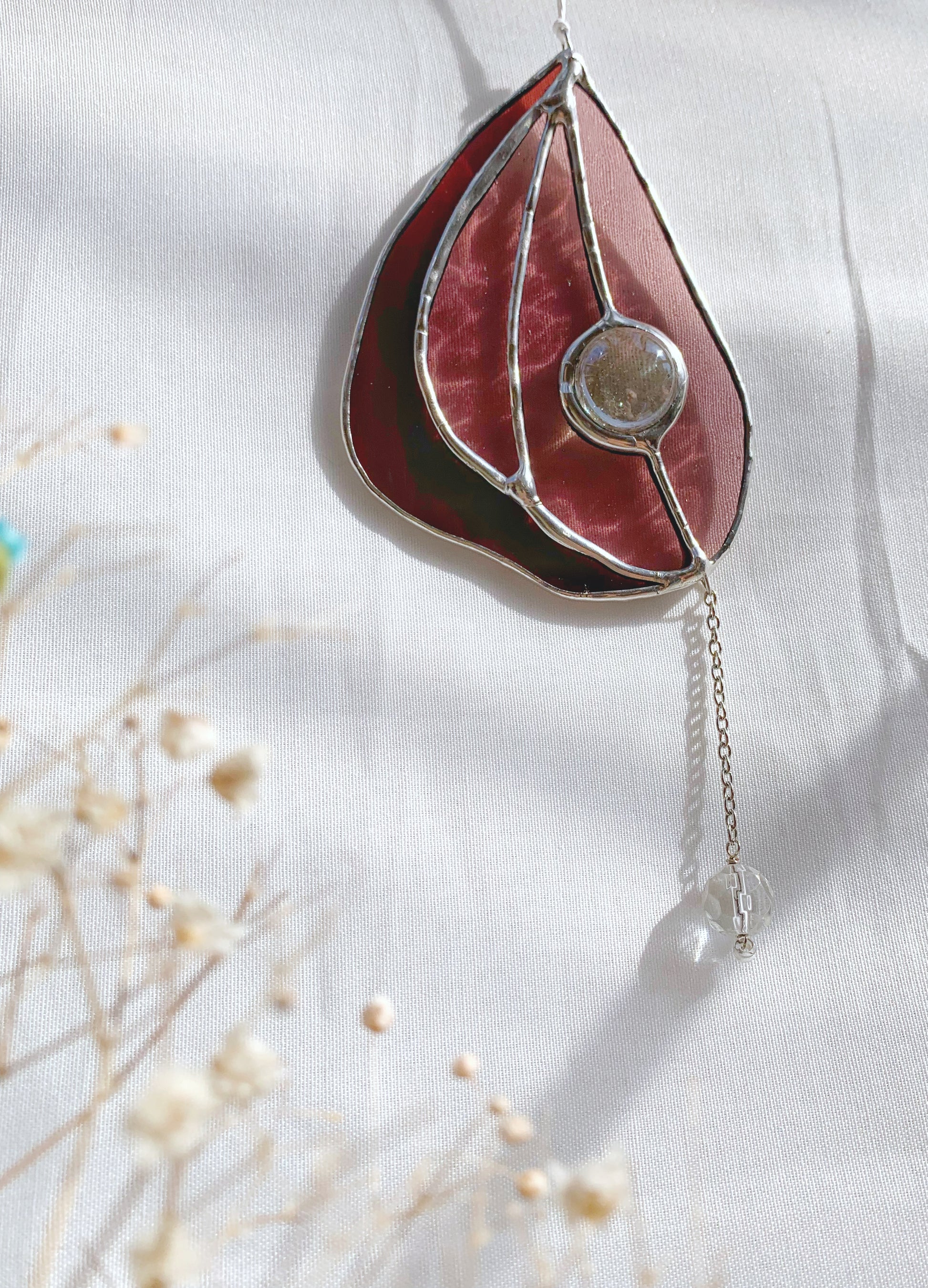 Note that each cut of glass is different in every one of my creations. It may contain small imperfections such as bubbles, fold lines, etc. Those are the results of the manufacture and are what make each piece of glass unique.