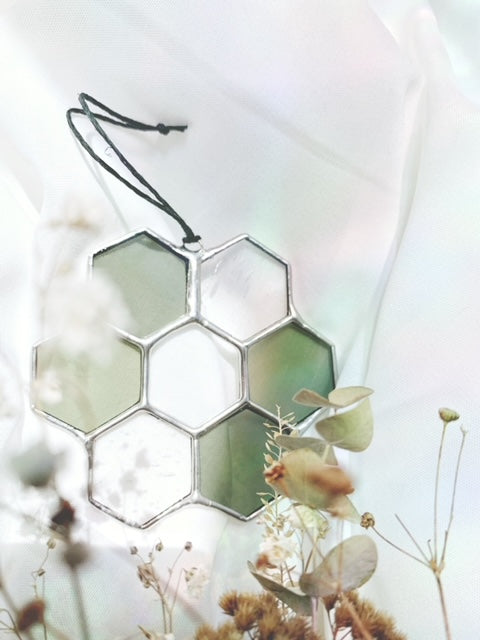 HONEYCOMBS FLOWER - STAINED GLASS SUNCATCHER - Made to order